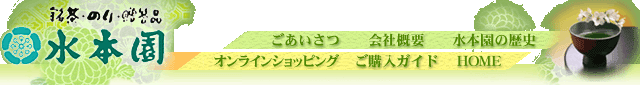 銘茶・のり・贈答品 水本園 ごあいさつ 会社概要 水本園の歴史 オンラインショッピング ご購入ガイド HOME
